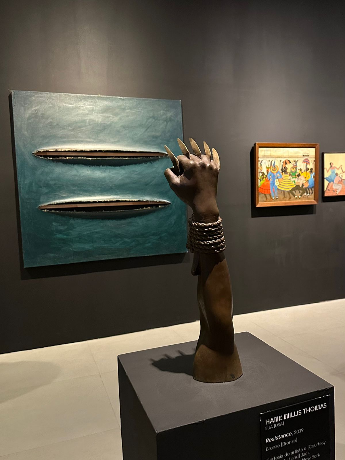 A amostra está linda, forte, emocionante, aberta ao público a partir de hoje (26/10) até 1° de fevereiro de 2026. É uma amostra perfeita, rica, transdisciplinar, emocionante, atemporal, panafricanista. Pode-se perceber um diálogo sublime entre a diáspora africana que une negros americanos e brasileiros através da arte. Somos irmãos, primos, parentes próximos, um cordão umbilical que não se rompeu e nunca será, pois saímos do ventre: a mãe África. Visite o Muncab, um museu com ênfase na valorização dos aspectos da cultura de matriz africana, onde é o destaque para a cultura brasileira e a sua inserção no contexto afrodiaspórico. O museu surgiu como resultado de uma história de ratificação do povo negro, onde quem chega tem contato com trabalhos que falam de identidade negra da África nas suas mais diversas regiões, não somente a questão do tráfico negreiro… mas também da cultura e arte dos saberes, dos griôs, das músicas, os aspectos positivos também. Para além disso, se aplica aos aspectos da culinária, religiosidade e manifestações culturais que são próximas. É uma exuberância de talentos, a nossa cultura do samba, maracatu da congada e de todos os outros movimentos que têm uma influência negra.