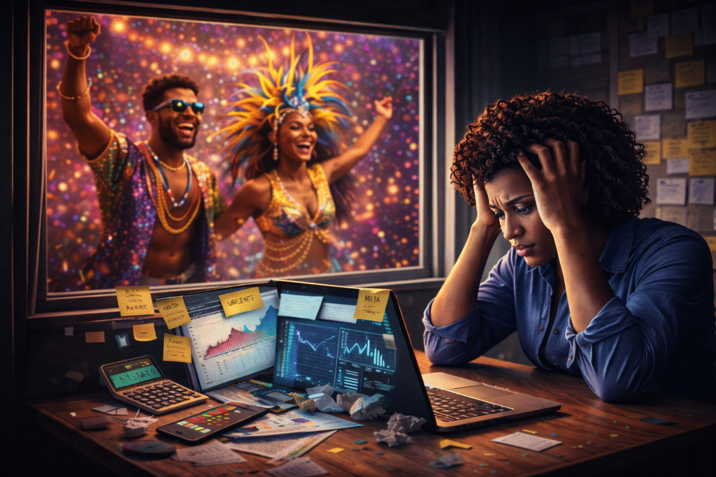 O Carnaval costuma ser apresentado como o grande momento do ano para quem empreende. A época da virada, do faturamento alto, da chance de finalmente “fazer caixa”. Mas essa narrativa não dá conta da realidade de muita gente. Para muitos empreendedores, especialmente no empreendedorismo popular e negro, o Carnaval começa bem antes da festa. Começa com cálculo, medo, expectativa e uma pressão silenciosa que atravessa o corpo e a mente: tem que dar certo.